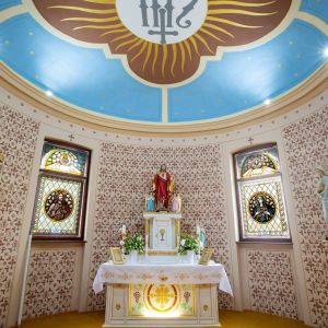 1905-ben nyílt meg, amelyet a régi csárdaépület (Tápé-Laposi csárda) átalakításával hoztak létre. A vasút felőli első részben egy tanterem, a másik felében tanítói lakás kapott helyet. Vasárnaponként a kápolnává berendezett tanteremben szentmisét tartottak. 1928-29-ben a régi iskola mellett két tanteremmel és egy tornyos kápolnával új iskola épült fel. Az iskolakápolnát 2020-ban Takács László, bácsalmási lakos eredeti állapotába felújította. Előzetes bejelentkezéssel látogatható.