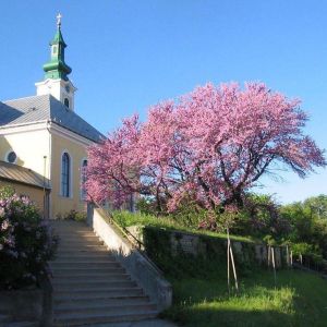 A település római katolikus temploma eredetileg 1761-1768 között épült, gróf Grassalkovich Antal költségén. 1901-ben mellékhajókkal bővítették. A téglából rakott támfallal megerősített kis magaslaton álló szakrális épület a település meghatározó karaktereleme. A templomkert ékessége a bejárat előtt álló kőfeszület és a Szentháromság-szobor (1873). A templom műemléki védelem alatt áll. A templom mellett tavasszal rózsaszín virágfelhőbe öltöző júdásfa az Év Fája volt 2020-ban.